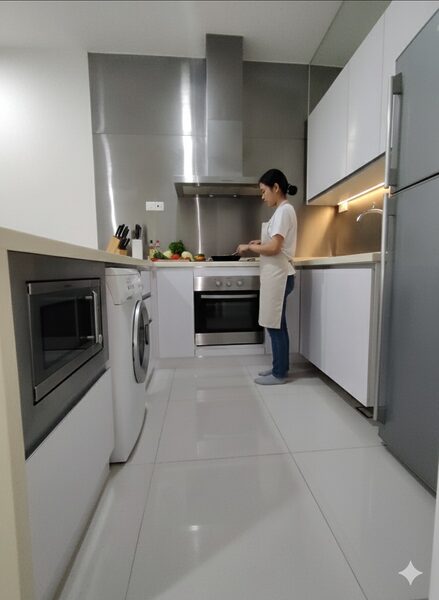 Enjoy a move-in ready home equipped with modern furnishings such as air conditioning, TV, sofa, dining set, kitchen cabinet with hood & hob, refrigerator, washing machine, and more.