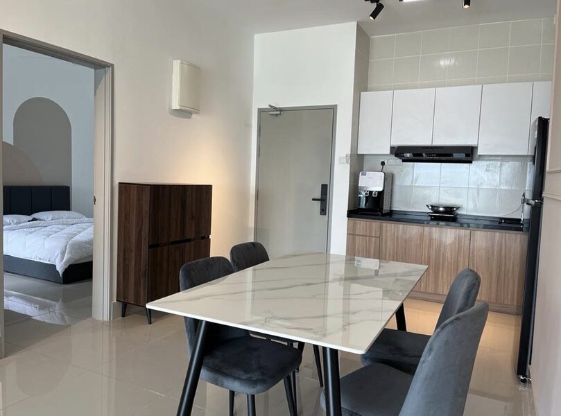 Enjoy a move-in ready home equipped with modern furnishings such as air conditioning, TV, sofa, dining set, kitchen cabinet with hood & hob, refrigerator, washing machine, and more.