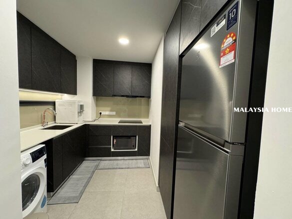 Enjoy a move-in ready home equipped with modern furnishings such as air conditioning, TV, sofa, dining set, kitchen cabinet with hood & hob, refrigerator, washing machine, and more.